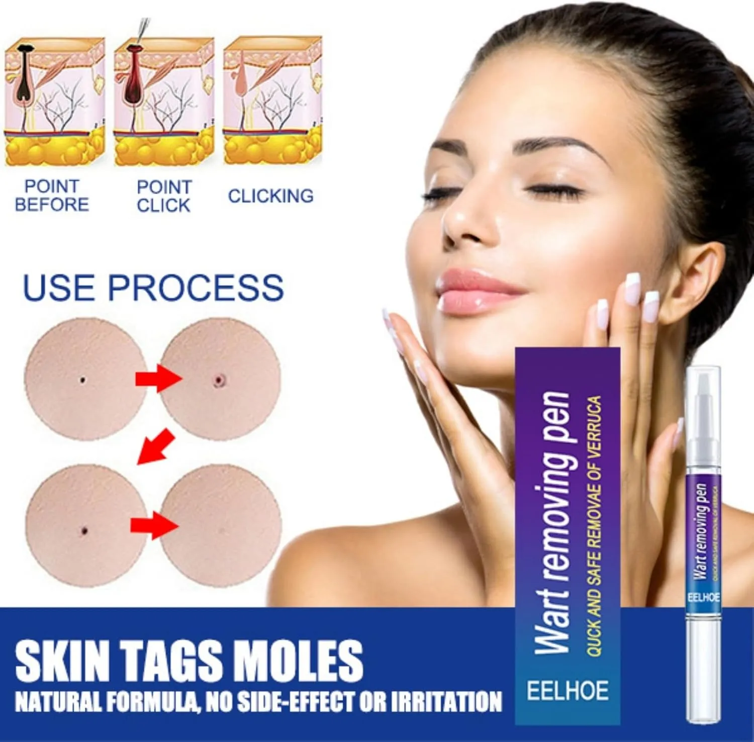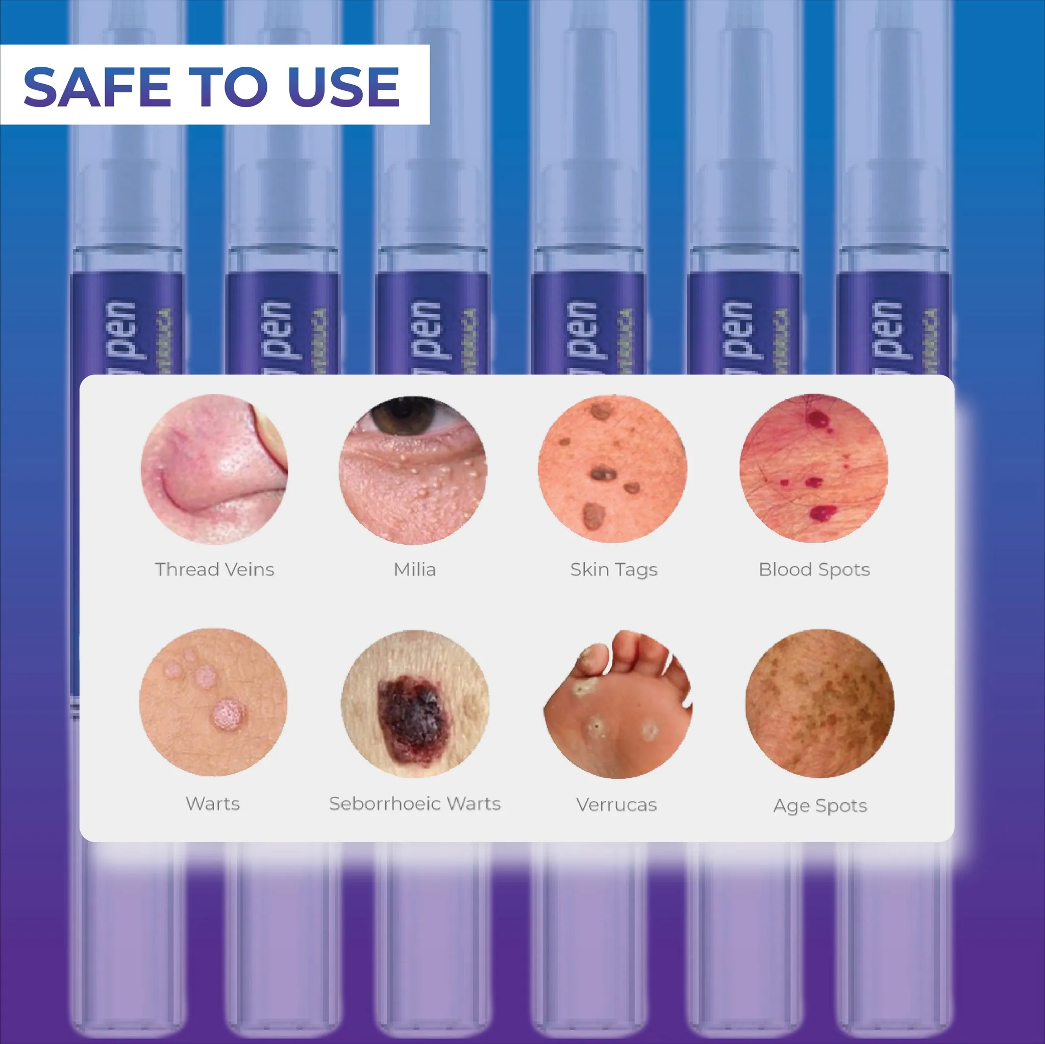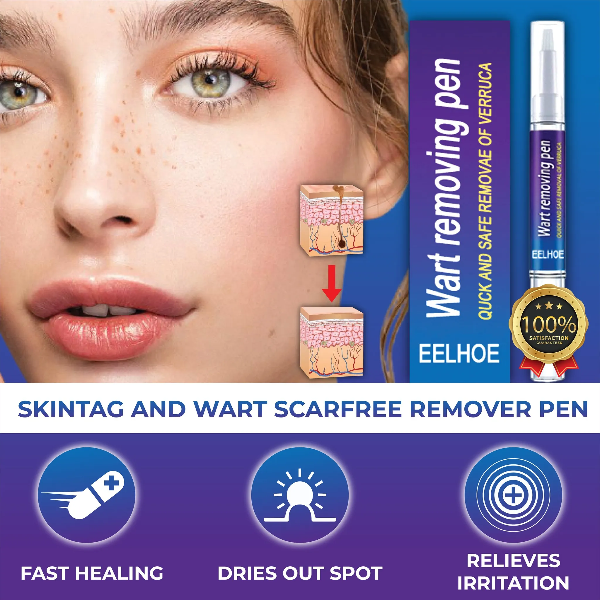 SkinTag and Wart Scar Free Remover Pen is IDEAL for REMOVING Warts, Skin Tags, Skin Marks, Skin Spots, Freckles, Moles, Tattoos, and more. It is SUITABLE for ALL SKIN TYPES. It is SAFE and